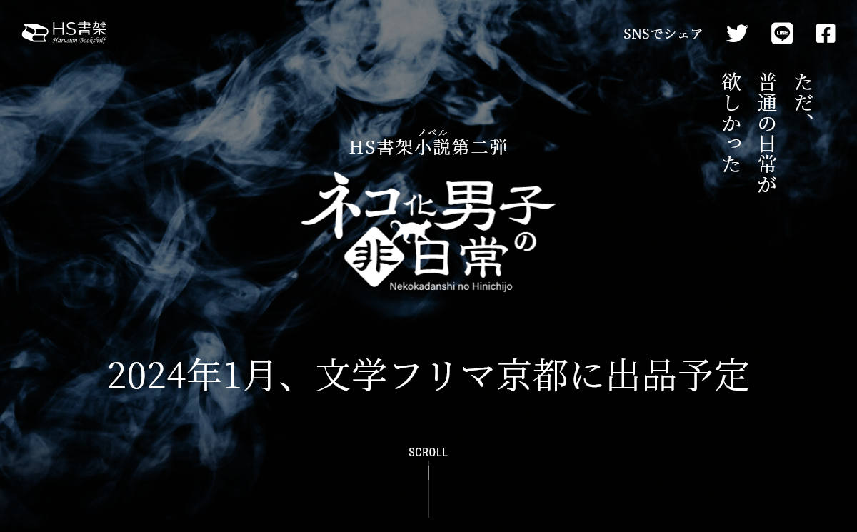 来年1月に京都で開催される、文学フリマに『ネコ化男子の非日常』という小説を新刊として発表する予定なのですが、本日予告サイト(ティザーサイト)を公開しました!